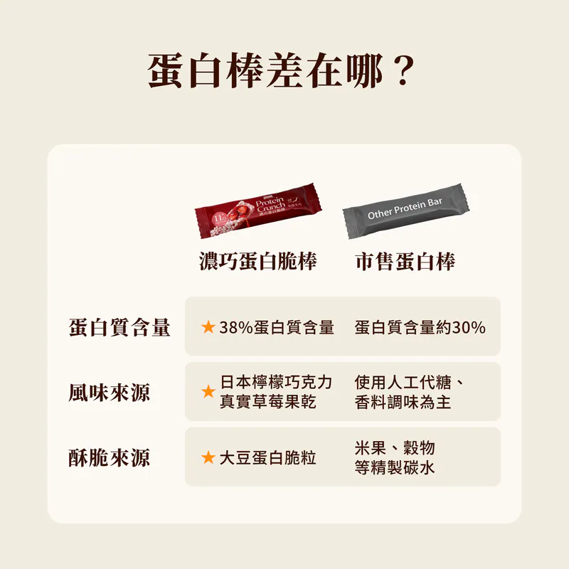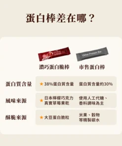 下午茶時間肚餓,食餅乾只有碳水,食蛋糕又怕肥? 這一支含有 11.9g 蛋白質(來自非基改大豆蛋白 + 純淨乳清蛋白),相當於近 2 隻雞蛋的蛋白質量!高蛋白帶來強大的飽腹感,一支落肚,撐到放工食晚飯都無問題。