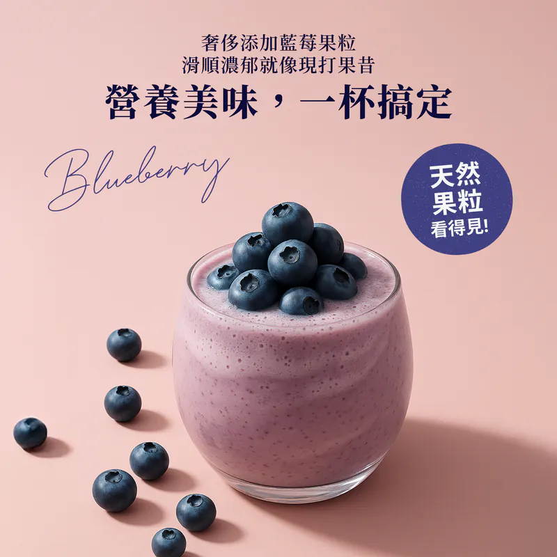 Spark Protein 藍莓牛奶嚴選整顆藍莓經急速冷凍乾燥製成果粒,完整封存新鮮藍莓的清新果香與花青素。沖泡後果肉還原,與濃醇乳清交織出酸甜平衡的絕妙層次。每包提供 20.3g 優質蛋白,熱量僅 115.5 卡。清爽解膩,是你運動後最奢華的抗氧化補給。