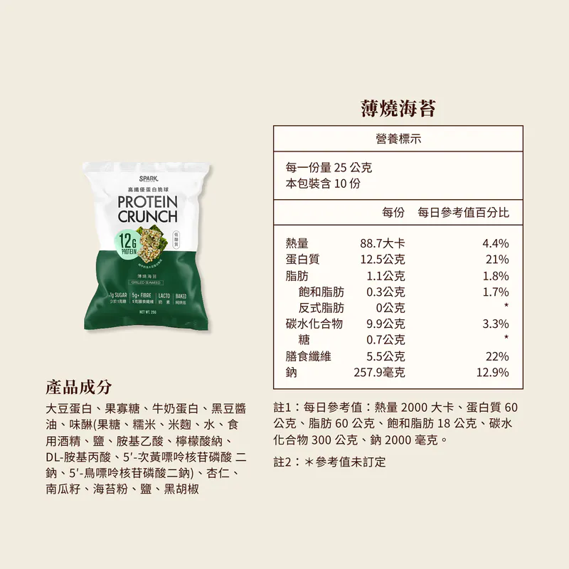 | 產品名稱 | Spark Protein Crunch 薄燒海苔 |