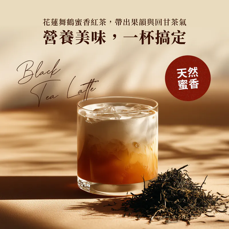 選用台灣花蓮舞鶴 的茶葉,經全發酵烘焙後,轉化為迷人的天然蜜香與果韻。這種甜,來自土地與小綠葉蟬的叮咬作用,而非糖罐。喝一口,彷彿置身花東縱谷的茶園。