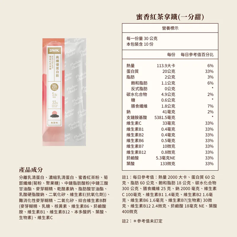 | 產品名稱 | Spark Protein 蜜香紅茶拿鐵 |